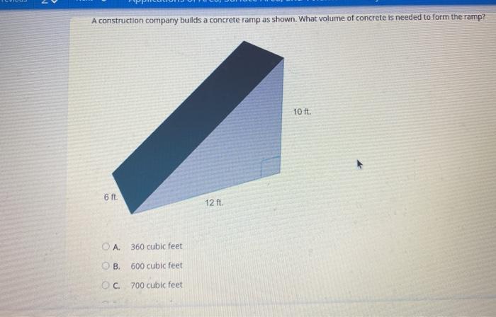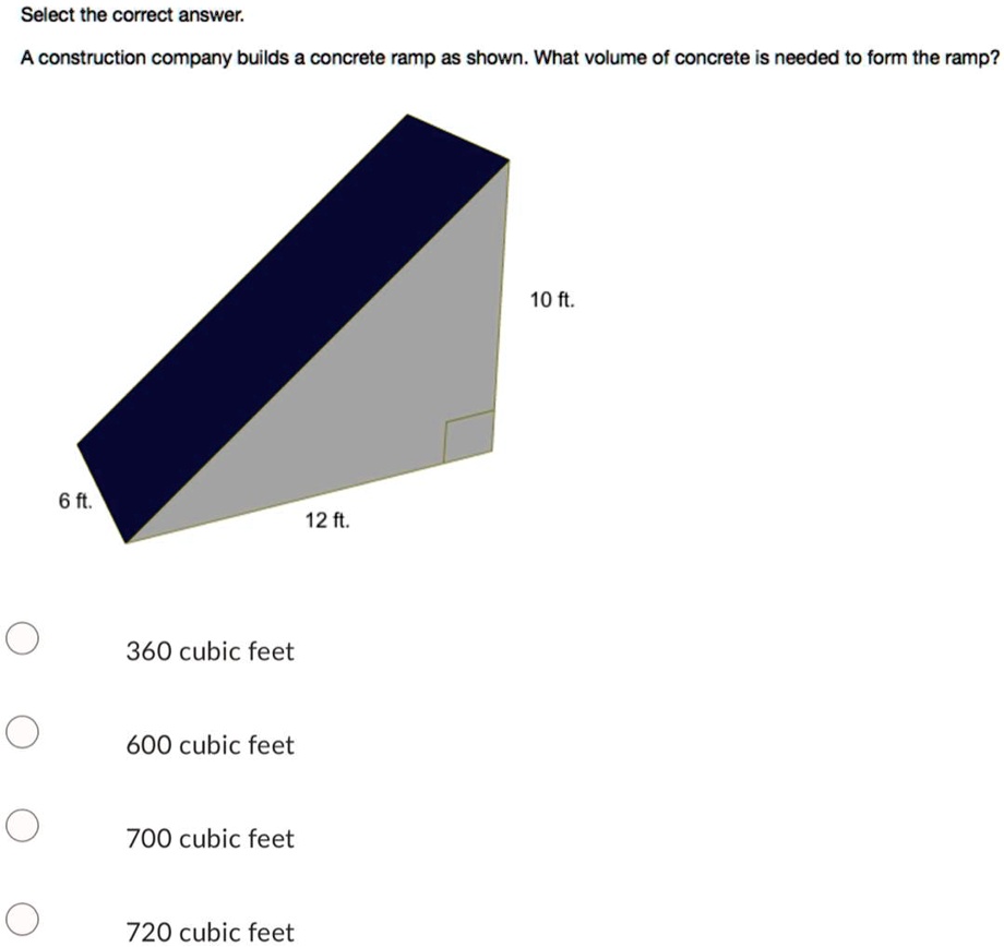 Solved Can You Guys Help Me With This Math Problem Ita S In A Picture Select The Correct Answer A Construction Company Builds A Concrete Ramp As Shown What Volume Of Concrete Is Needed